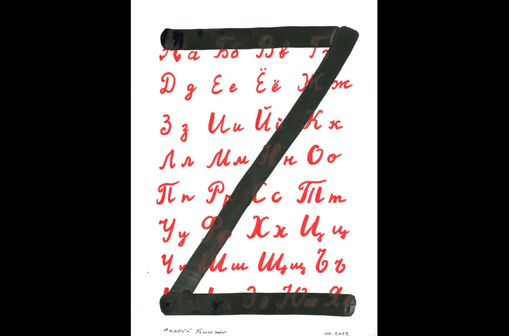 На выставке в рамках форума «Словоново» в Черногории художник Андрей Бильжо представил новый цикл «Азбука — 2022» — антивоенный и антитиранический эпос, по буквам передающий пафос происходящего. The Insider публикует первую из трех частей этого цикла.
