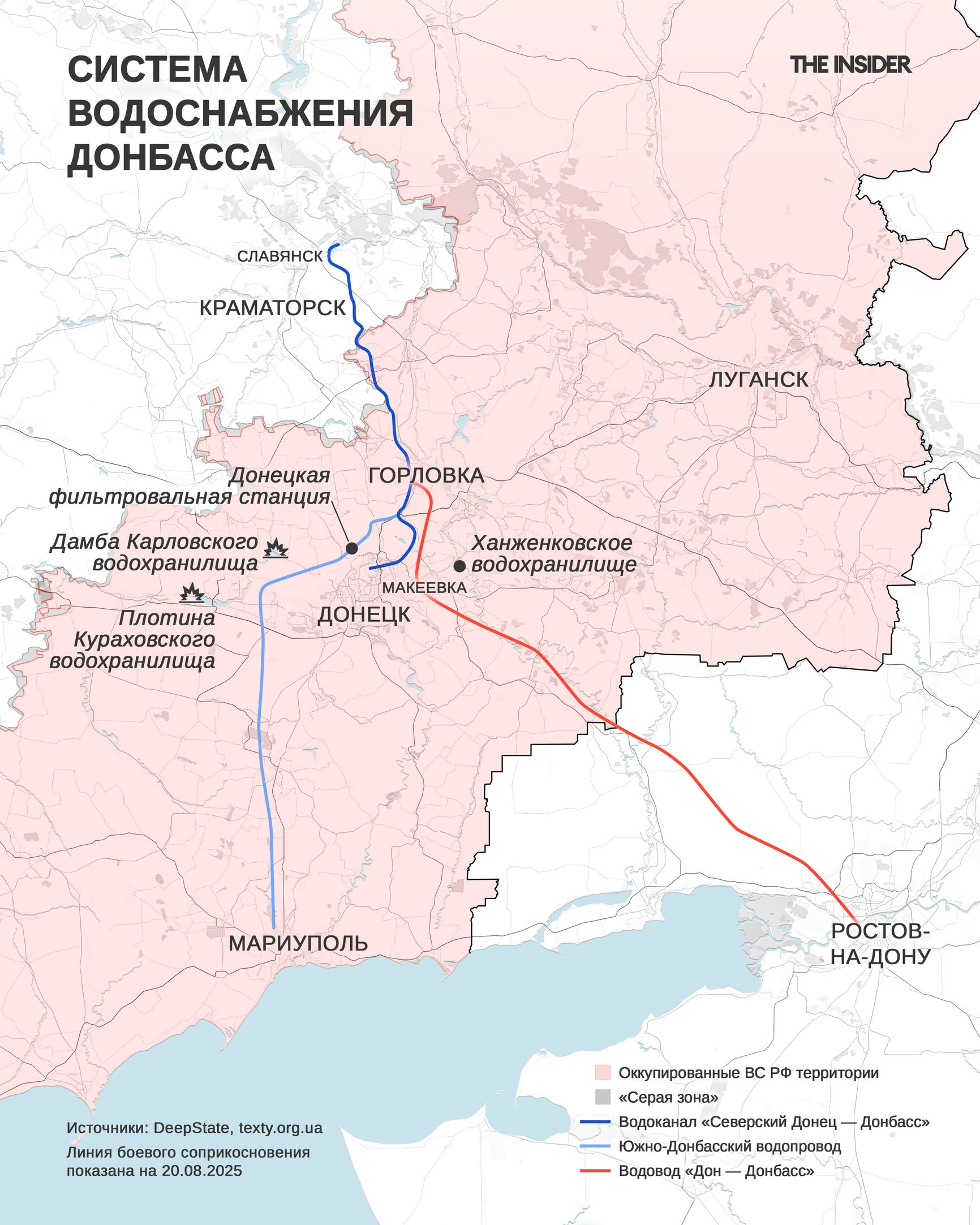 В разгар экстремально жаркого лета 2025 года Донецкая область оказалась на грани гуманитарной катастрофы из-за перебоев с водоснабжением. Пророссийские СМИ обвиняют в кризисе Украину, но система водоснабжения в регионе постепенно разрушалась в ходе войны, начатой Россией в 2014 году, и особенно пострадала после ее полномасштабного вторжения. Чиновники, долгие годы не уделявшие внимания проблеме, столкнулись с тем, что в момент засухи оказались совершенно бессильны.