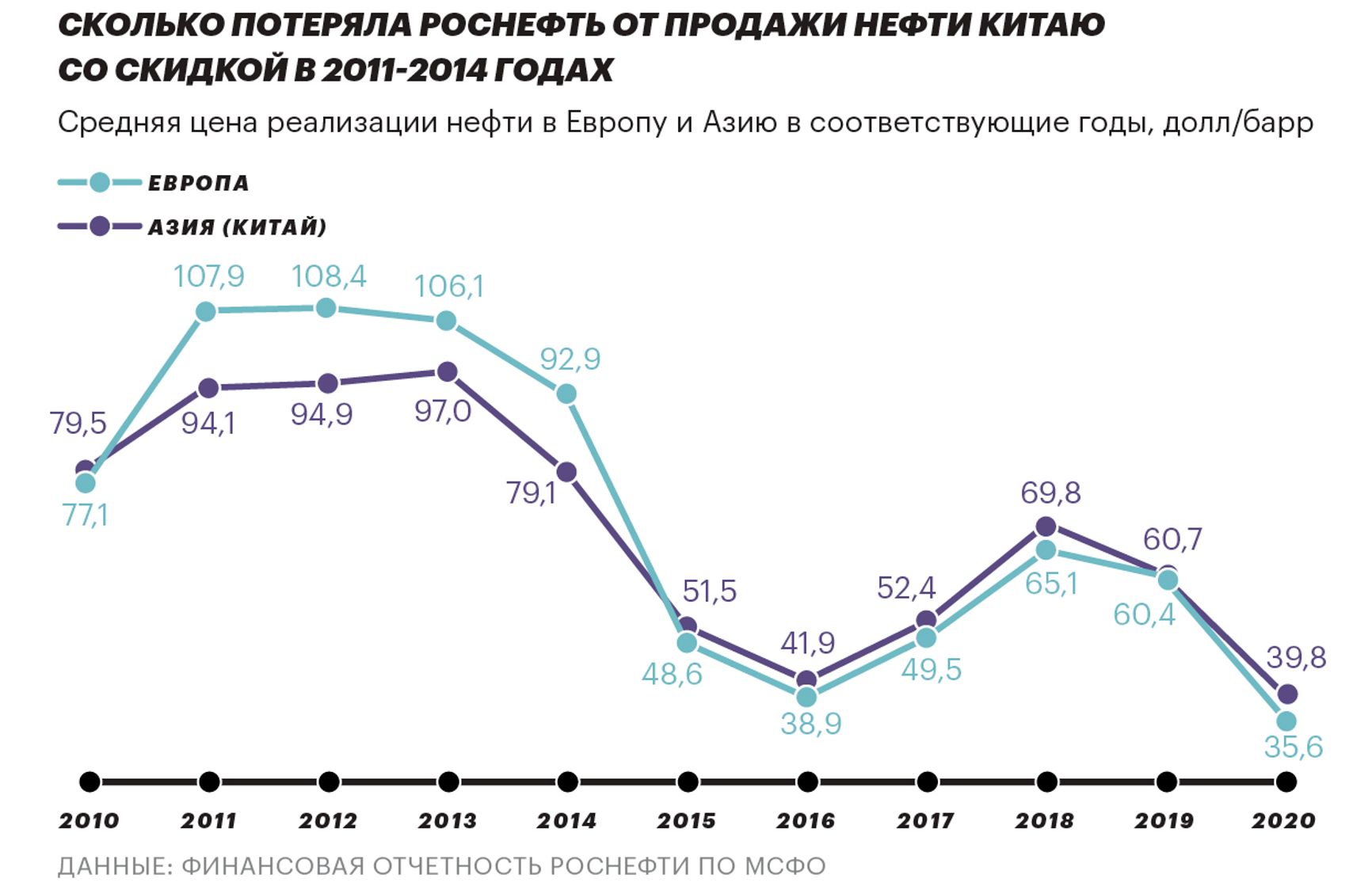 Благодаря строительству нефтепровода «Восточная Сибирь-Тихий океан» России удалось более успешно диверсифицировать экспорт в направлении Китая - сегодня он потребляет примерно 30% российской экспортной сырой нефти (более половины по прежнему - Европа), хотя всего 2% экспортных нефтепродуктов (2/3 экспорта нефтепродуктов идут в Европу). Но насколько это выгодно? С самого начала поставок нашей нефти в Китай «Роснефть» предоставляла КНР значительные льготы по цене, в результате которых, если посмотреть отчетность компании по международным стандартам, только прямые потери в результате более низких цен поставок нефти в Китай составили порядка $9 млрд: