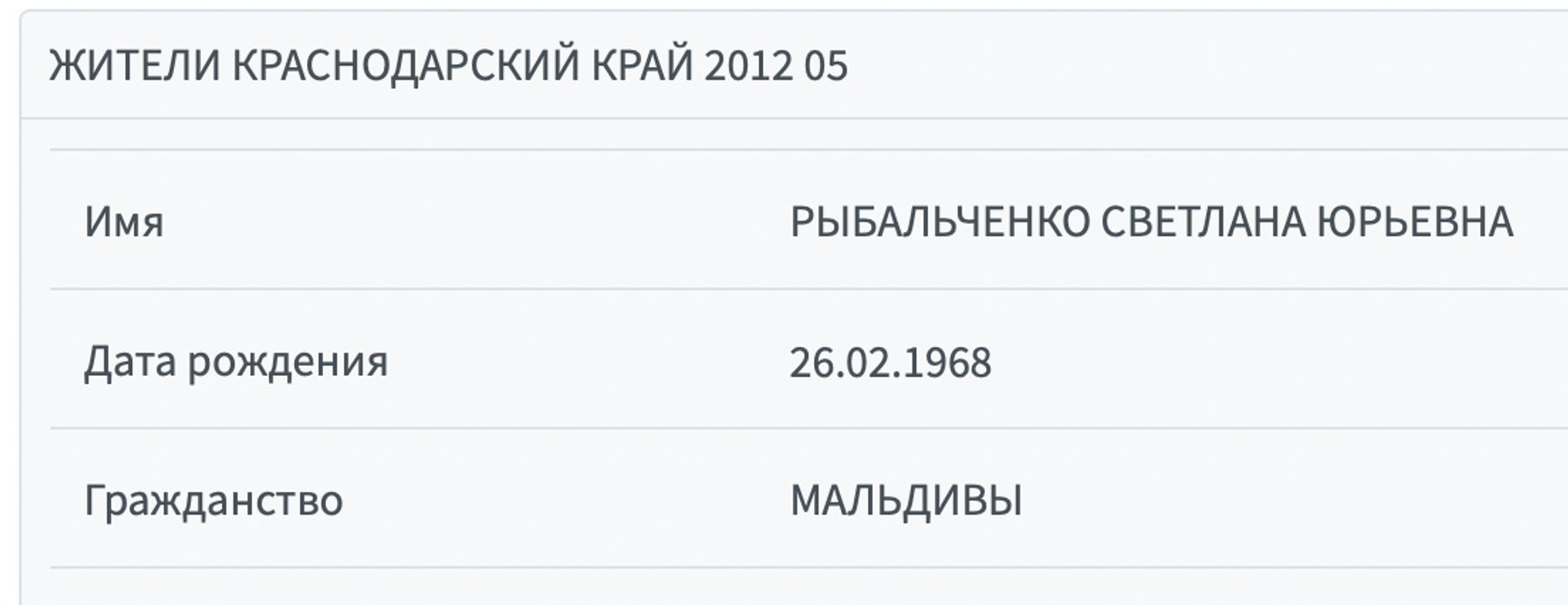 Избравшись в Госдуму на деньги своей тети, Павел Федяев мог фактически стать иностранным агентом: Рыбальченко, согласно утечкам информации о жителях Краснодарского края, получала зарубежные гражданства. Именно «гражданства», во множественном числе. Она фигурирует как обладатель паспорта ОАЭ и паспорта Мальдив. Каким образом ей это удалось — неизвестно.