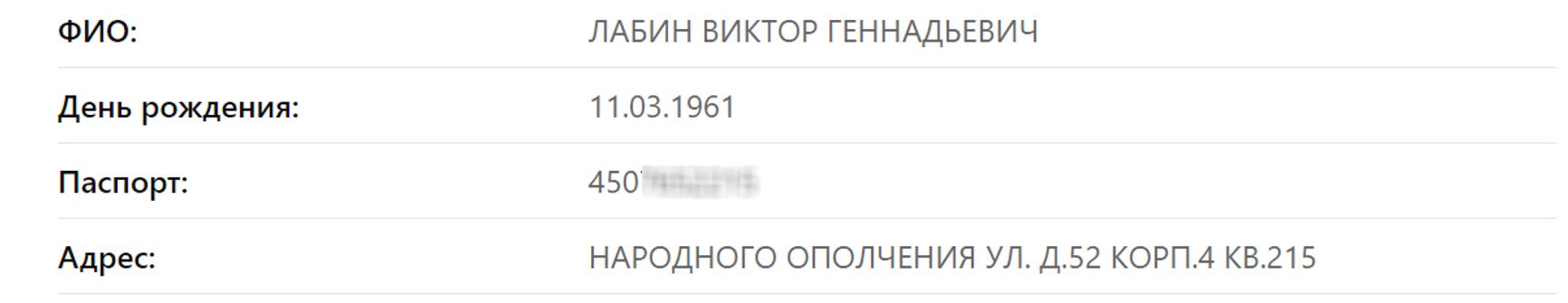 Судя по базам адресов, Виктор Лабин в Москве был прописан в знаменитом общежитии академии ГРУ на улице Народного ополчения (д. 52 корп. 4).